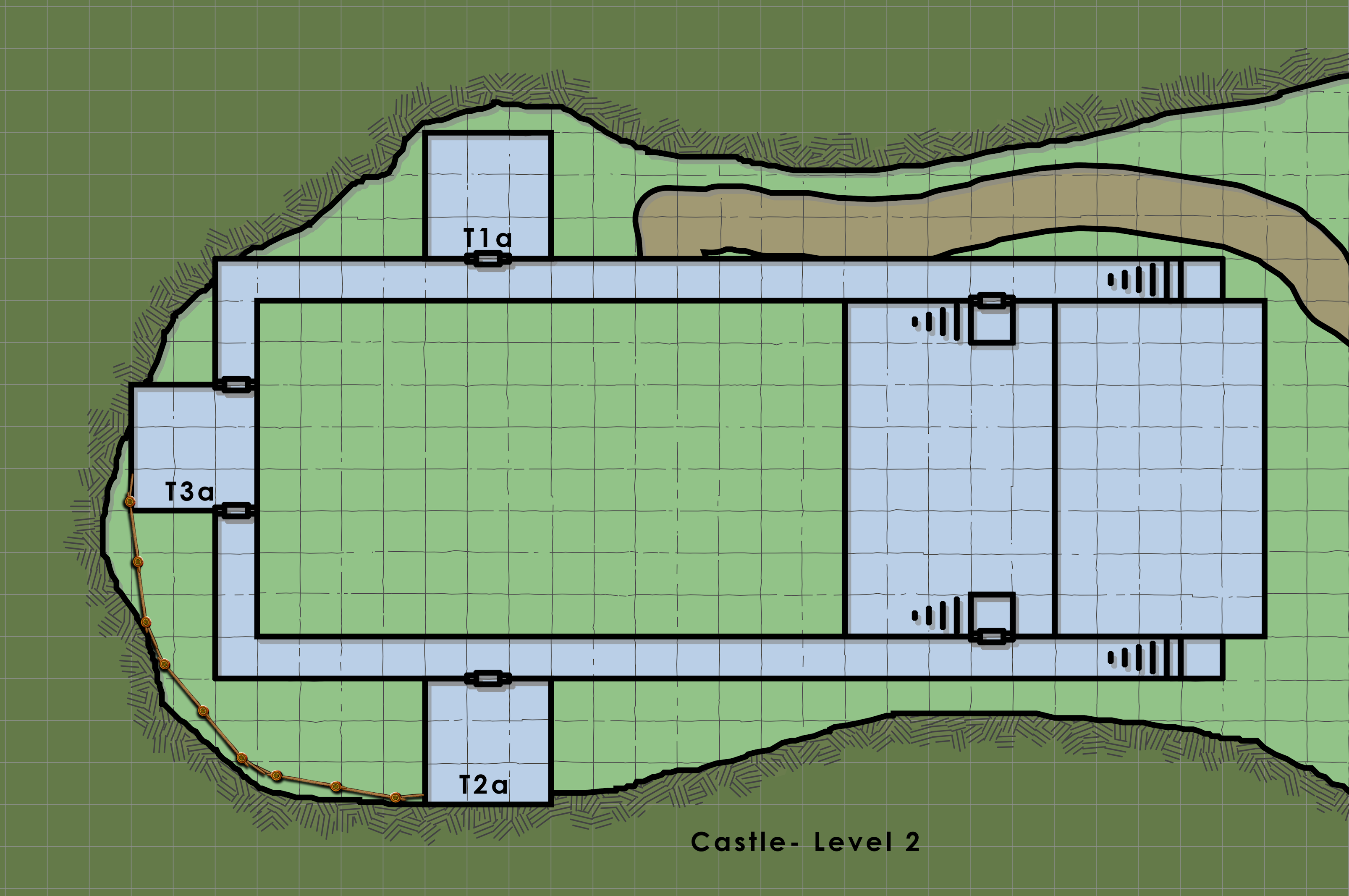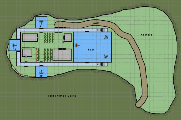 Lord Shump originally assigned the larger rooms, T1g and T2g for Renly and Giggles, as they have henchmen. T2a would be for Zerkwad and T1a for any quests. T3a and T3g for Mrow as room (lower) and workshop (upper). Castle Shump and its caretakers.